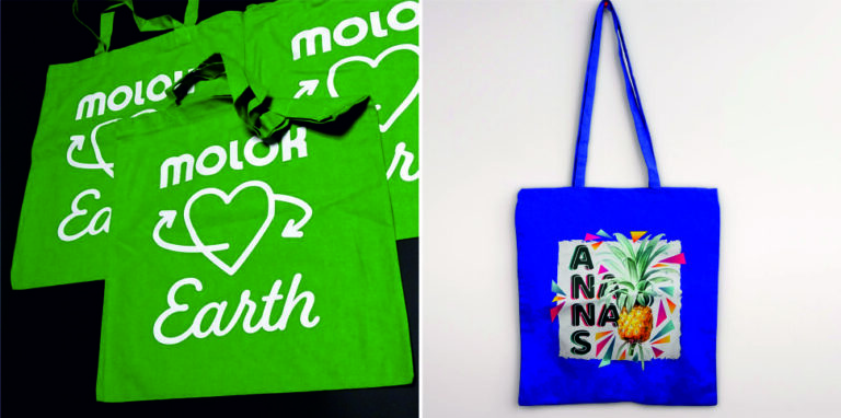 Torby bawełniane z zadrukiem w technologii sitodruk lub w technologii transferu cyfrowego. Zadruk jednostronny lub dwustronny.